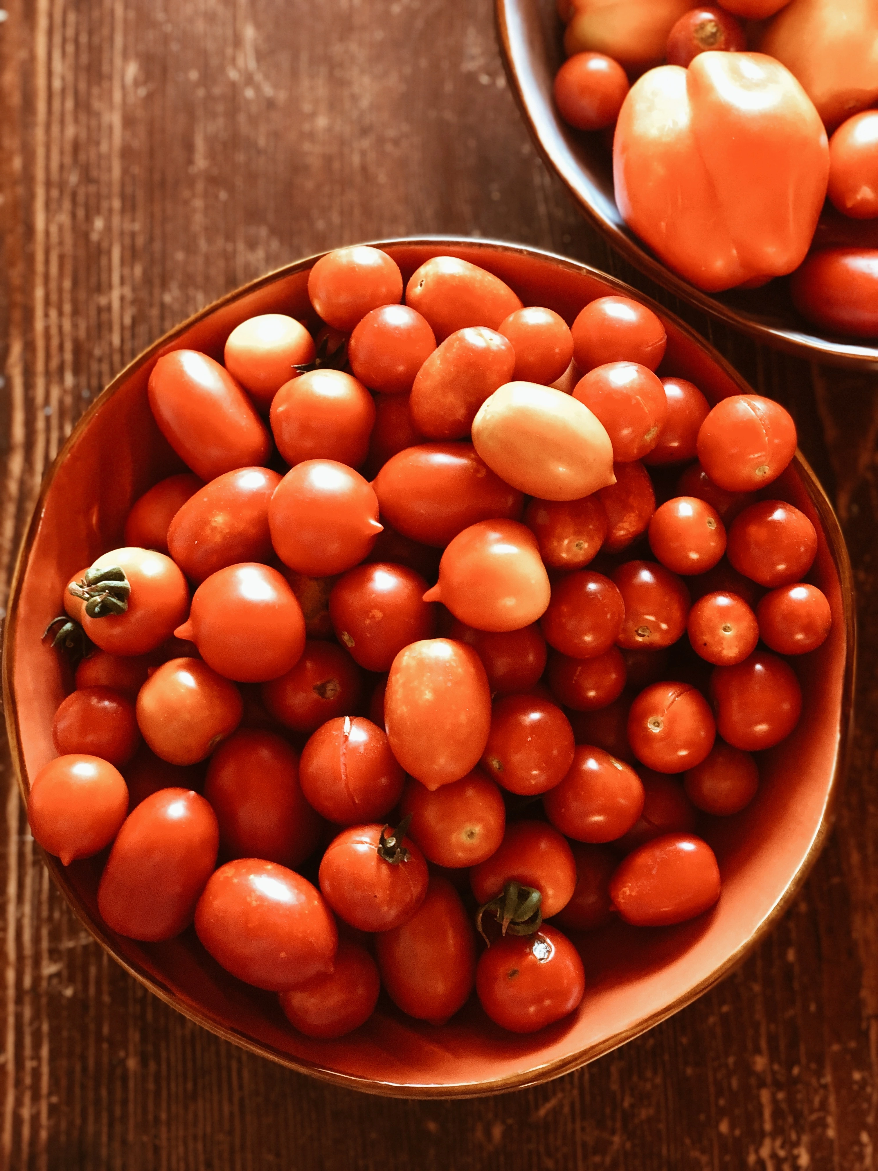 • Cut the tomatoes in half.